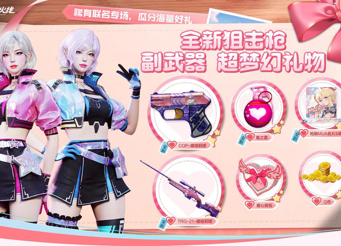 CF全新枪娘首发登场活动网址 请点击文字直接进入活动相关网站: CF全新枪娘首发登场活动网址 可直购枪娘钟姬玩偶、五折买CF双区特惠抽奖券。 CF奖池:王者沙漠玫瑰、白虎-枪娘安妮、炼狱-枪娘掣电、金色蔷薇-枪娘阿敏、火麒麟-枪娘凯萨琳、毁灭-枪娘格雷姐妹等等 活动可开特惠卡,领抽奖券。 建议用邀请码开卡,可直升2级,总计领抽奖券*8(双区各4): 每级领CF抽奖券*2+CFHD抽奖券*2,最多5…... 可可